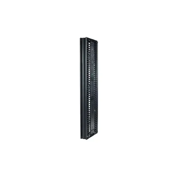 This cable manager features dual-sided finger-duct channels, allowing access and routing options on both the front and rear of the rack.